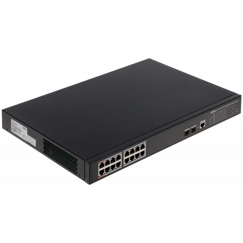 16-портовый гигабитный управляемый коммутатор с PoE, уровень L2 Порты: 16 RJ45 10/100/1000Мбит/с; IEEE802.3af/IEEE802.3at/Hi-PoE; 2 SFP 100/1000Мбит/с (uplink); мощность PoE: порты 1~2 до 60Вт, порты 3~16 до 30Вт, суммарно до 240Вт; питание: 100~240В(AC); грозозащита: до 2кВ