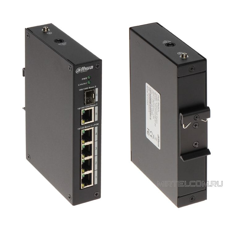 PoE-коммутатор DAHUA DH-PFS3106-4P-60. Индустриальный 4 портовый сетевой РОЕ коммутатор 2-го уровня; 4 POE порта RJ45 -100mb; Uplink RJ-45 -1GB, SF -1GB. Поддержка: IEEE802,3af, IEEE802,3at; Питание: DC53В/ 60Ватт; Рабочая температура: -40 -+60 С.
